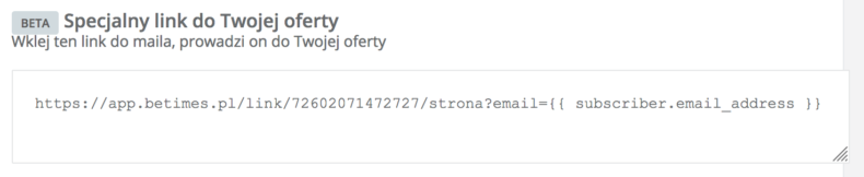 - ConvertKit – http://link-do-mojej-oferty.pl?email={{ subscriber.email_address }}